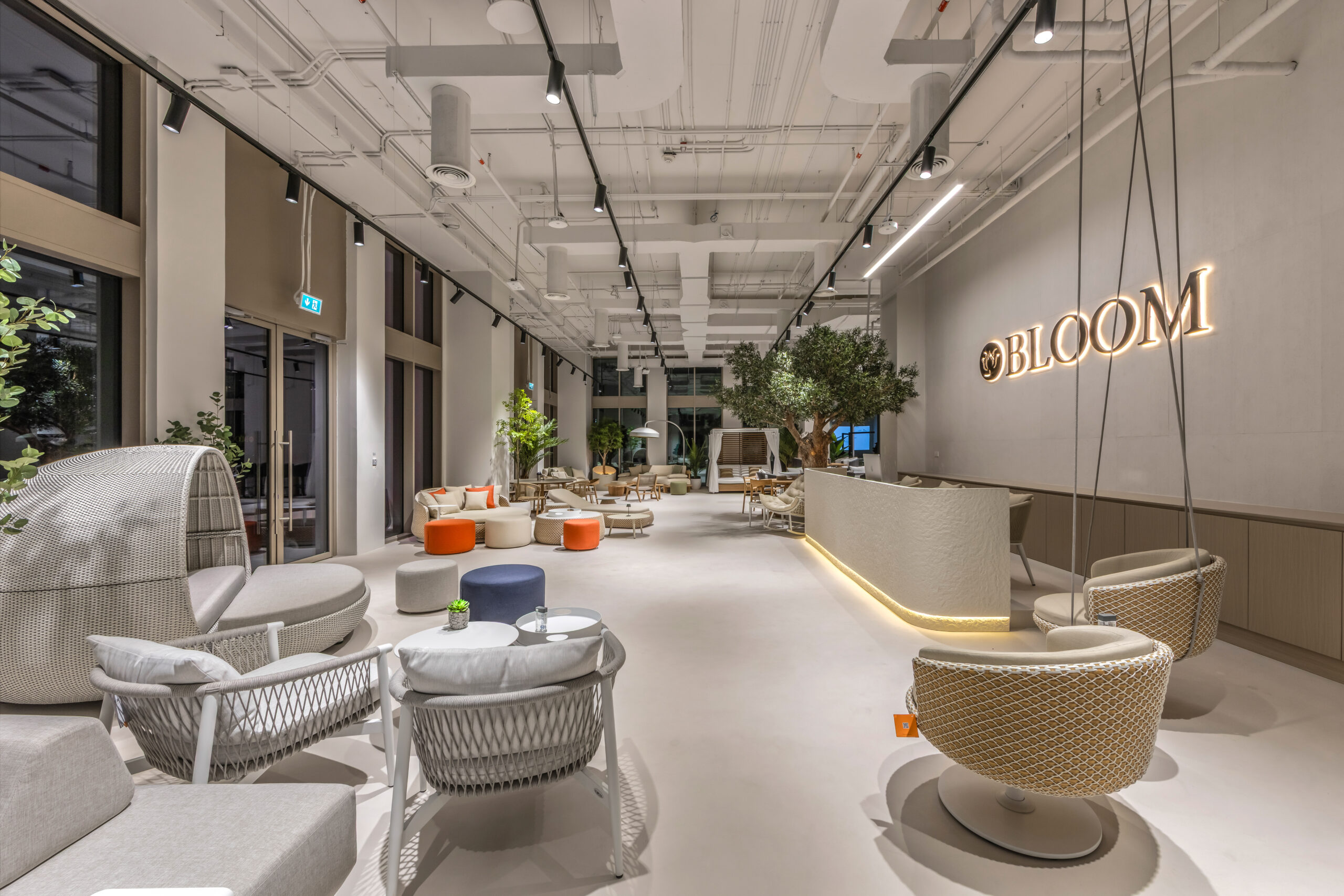 A premium retail showroom designed to showcase outdoor furniture in a clean, open, and experience-driven environment.